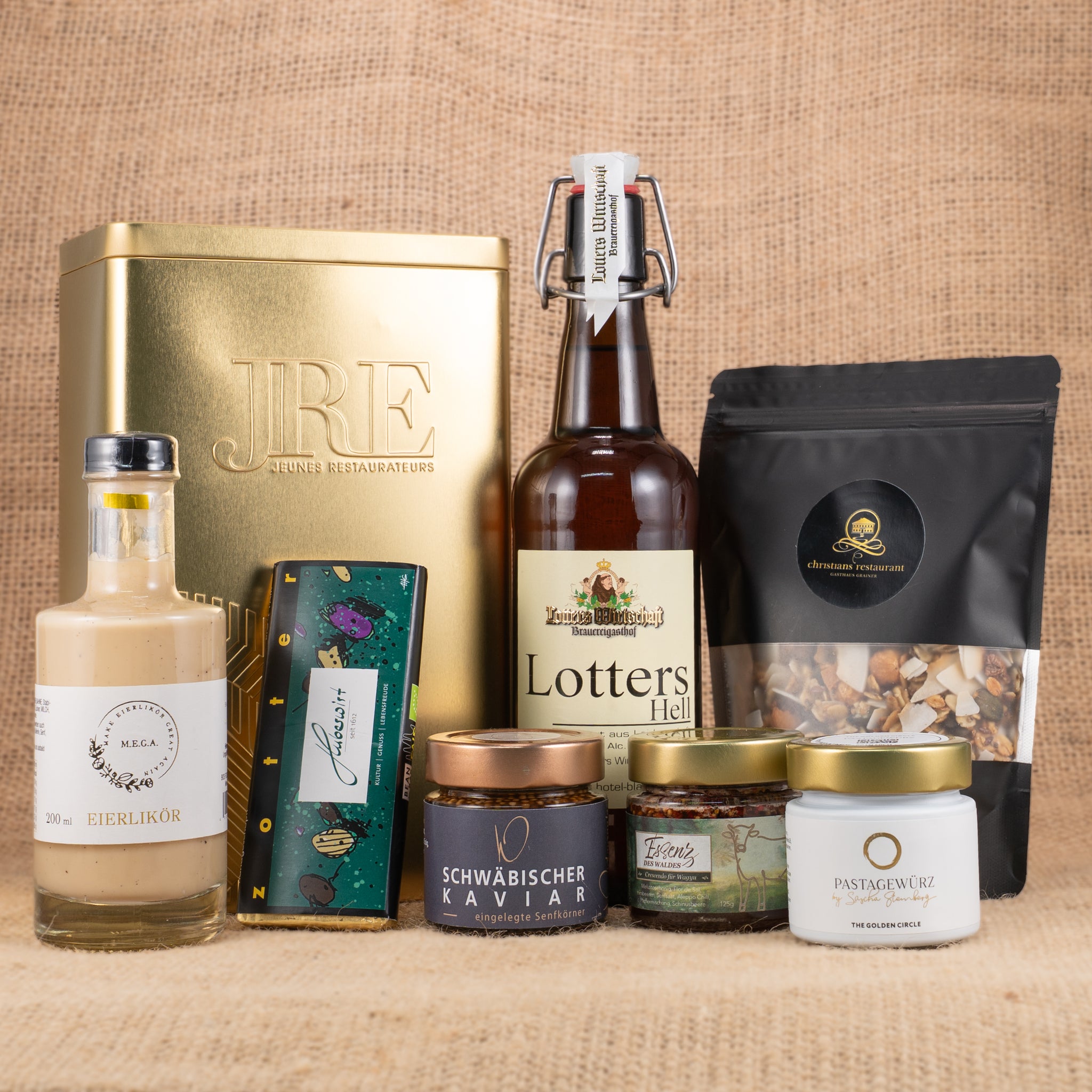 Liebevoll befüllte JRE Box mit exklusiven Spezialitäten folgender Spitzenköche: